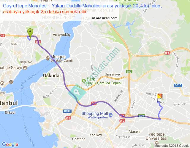 Eğer Gayrettepe Mahallesi Yukarı Dudullu Mahallesi arası ne kadar yakar (benzin/mazot) diyorsanız, kilometrede 3 ₺ yakan bir aracınız var ise 60, km'de 4 ₺ yakan bir aracınız var ise 80, km'de 5 ₺ yakan bir aracınız var ise 100 ile bu yolculuğu tamamlayabilirsiniz.
