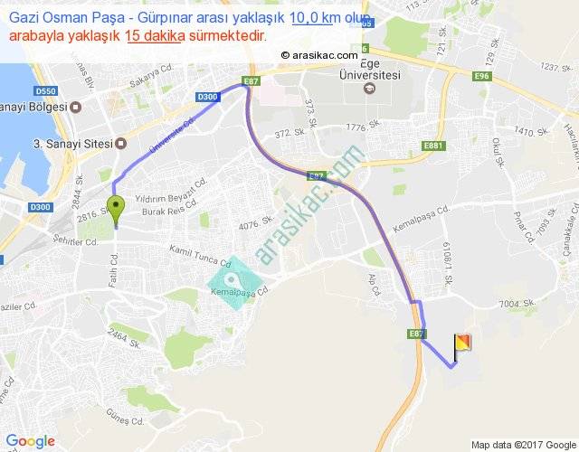 Gazi Osman Paşa - Gürpınar arası yaklaşık olarak 90 km/h ile yukarıda belirtilen sürede olup, iki yerin kuş uçuşu uzaklığı (mesafesi) 6'dir. Yolculuk otobüsle 19 dakika sürmektedir.