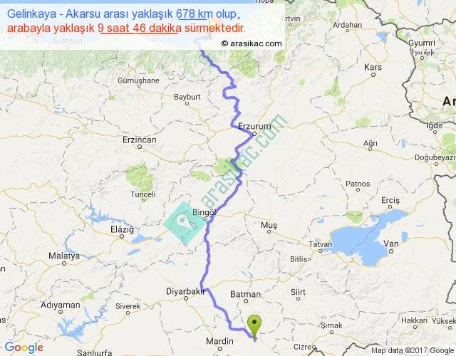 Eğer Gelinkaya Akarsu arası ne kadar yakar (benzin/mazot) diyorsanız, kilometrede 3 ₺ yakan bir aracınız var ise 2034, km'de 4 ₺ yakan bir aracınız var ise 2712, km'de 5 ₺ yakan bir aracınız var ise 3390 ile bu yolculuğu tamamlayabilirsiniz.