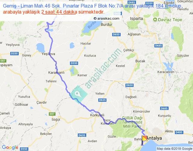 Gemiş - Liman Mah.46 Sok. Pınarlar Plaza F Blok No:7 A arası detaylı bilgi