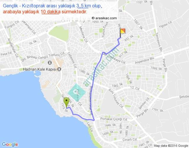 Gençlik - Kızıltoprak arası yaklaşık olarak 90 km/h ile yukarıda belirtilen sürede olup, iki yerin kuş uçuşu uzaklığı (mesafesi) 2'dir. Yolculuk otobüsle 13 dakika sürmektedir.