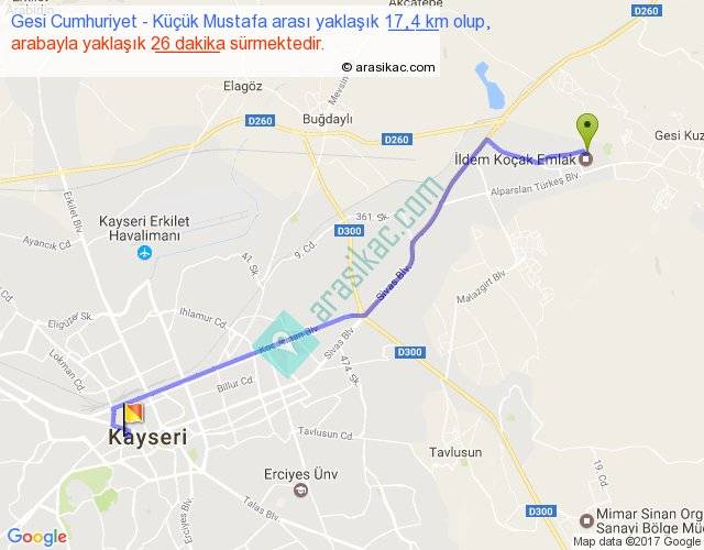 Gesi Cumhuriyet - Küçük Mustafa arası yaklaşık olarak 90 km/h ile yukarıda belirtilen sürede olup, iki yerin kuş uçuşu uzaklığı (mesafesi) 15'dir. Yolculuk otobüsle 33 dakika sürmektedir.