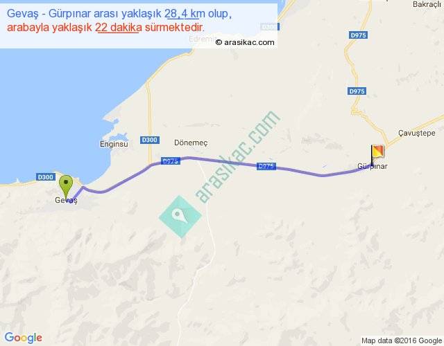 Gevaş - Gürpınar arası yaklaşık olarak 90 km/h ile yukarıda belirtilen sürede olup, iki yerin kuş uçuşu uzaklığı (mesafesi) 26'dir. Yolculuk otobüsle 28 dakika sürmektedir.