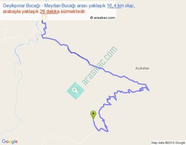 Geyikpınar Bucağı - Meydan Bucağı arası yaklaşık olarak 90 km/h ile yukarıda belirtilen sürede olup, iki yerin kuş uçuşu uzaklığı (mesafesi) 6'dir. Yolculuk otobüsle 36 dakika sürmektedir.