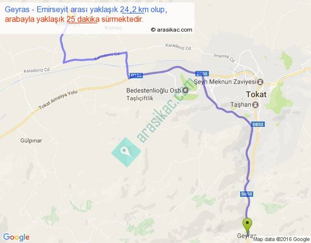 Eğer Geyras Emirseyit arası ne kadar yakar (benzin/mazot) diyorsanız, kilometrede 3 ₺ yakan bir aracınız var ise 72, km'de 4 ₺ yakan bir aracınız var ise 96, km'de 5 ₺ yakan bir aracınız var ise 120 ile bu yolculuğu tamamlayabilirsiniz.