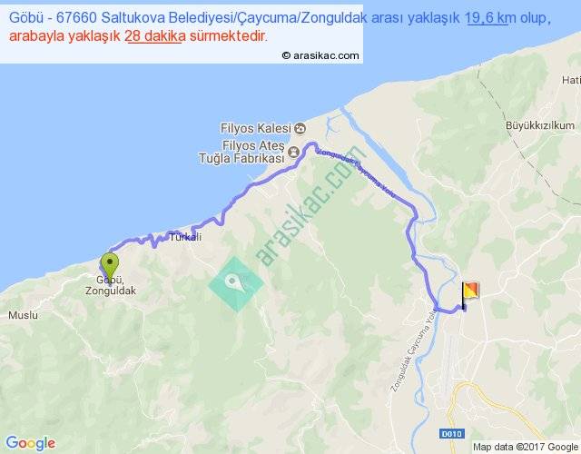 Göbü - 67660 Saltukova Belediyesi Çaycuma Zonguldak arası yaklaşık olarak 90 km/h ile yukarıda belirtilen sürede olup, iki yerin kuş uçuşu uzaklığı (mesafesi) 11'dir. Yolculuk otobüsle 36 dakika sürmektedir.