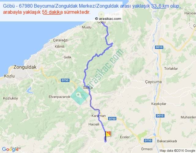 Göbü - 67980 Beycuma Zonguldak Merkez Zonguldak arası yaklaşık olarak 90 km/h ile yukarıda belirtilen sürede olup, iki yerin kuş uçuşu uzaklığı (mesafesi) 22'dir. Yolculuk otobüsle 1 saat 11 dakika sürmektedir.