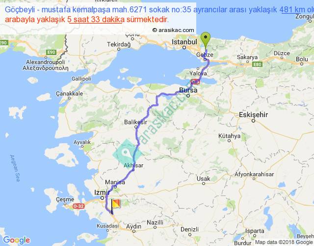 Eğer Göçbeyli mustafa kemalpaşa mah.6271 sokak no:35 ayrancılar arası ne kadar yakar (benzin/mazot) diyorsanız, kilometrede 3 ₺ yakan bir aracınız var ise 1443, km'de 4 ₺ yakan bir aracınız var ise 1924, km'de 5 ₺ yakan bir aracınız var ise 2405 ile bu yolculuğu tamamlayabilirsiniz.