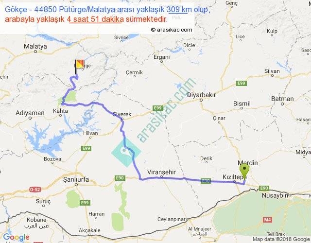 Gökçe - 44850 Pütürge Malatya arası yaklaşık olarak 90 km/h ile yukarıda belirtilen sürede olup, iki yerin kuş uçuşu uzaklığı (mesafesi) 197'dir. Yolculuk otobüsle 6 saat 18 dakika sürmektedir.