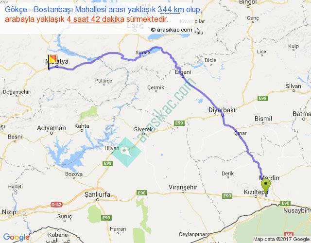 Gökçe - Bostanbaşı Mahallesi arası yaklaşık olarak 90 km/h ile yukarıda belirtilen sürede olup, iki yerin kuş uçuşu uzaklığı (mesafesi) 248'dir. Yolculuk otobüsle 6 saat 6 dakika sürmektedir.