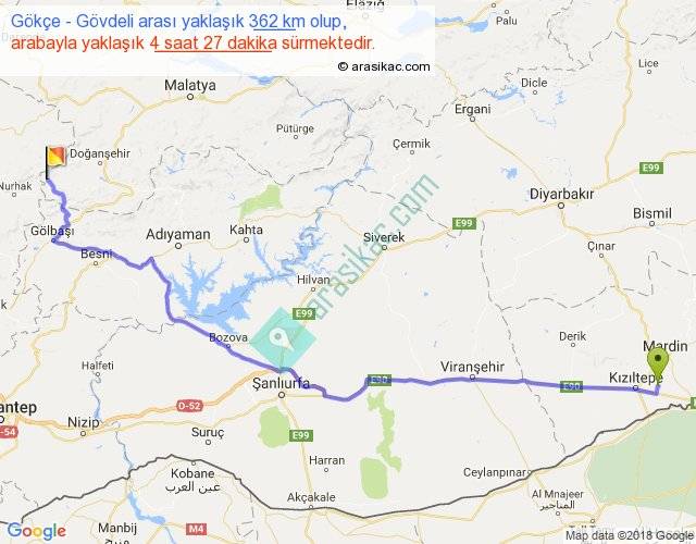 Gökçe - Gövdeli arası yaklaşık olarak 90 km/h ile yukarıda belirtilen sürede olup, iki yerin kuş uçuşu uzaklığı (mesafesi) 285'dir. Eğer belirtilen yerler arasında uçak seferi var ise bu süre uçakla 26 dakika'ya kadar düşebilir. Yolculuk otobüsle 5 saat 47 dakika sürmektedir.