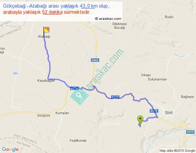 Gökçebağ - Atabağı arası yaklaşık olarak 90 km/h ile yukarıda belirtilen sürede olup, iki yerin kuş uçuşu uzaklığı (mesafesi) 26'dir. Yolculuk otobüsle 1 saat 7 dakika sürmektedir.
