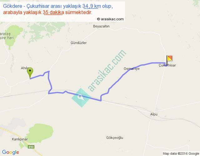 Gökdere - Çukurhisar arası yaklaşık olarak 90 km/h ile yukarıda belirtilen sürede olup, iki yerin kuş uçuşu uzaklığı (mesafesi) 26'dir. Yolculuk otobüsle 45 dakika sürmektedir.