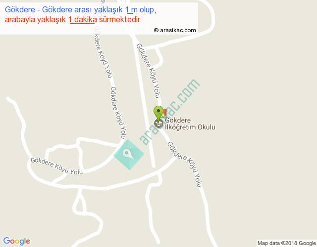 Gökdere - Gökdere arası yaklaşık olarak 90 km/h ile yukarıda belirtilen sürede olup, iki yerin kuş uçuşu uzaklığı (mesafesi) 0'dir. Yolculuk otobüsle 1 dakika sürmektedir.