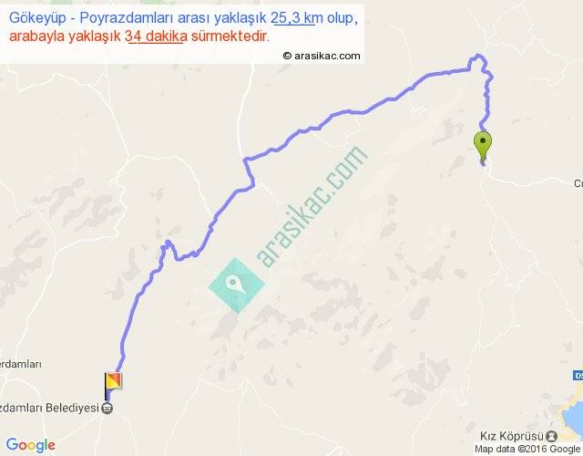 Gökeyüp - Poyrazdamları arası yaklaşık olarak 90 km/h ile yukarıda belirtilen sürede olup, iki yerin kuş uçuşu uzaklığı (mesafesi) 14'dir. Yolculuk otobüsle 44 dakika sürmektedir.