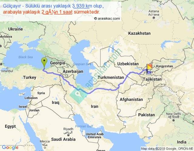 Gölçayır - Sülüklü arası yaklaşık olarak 90 km/h ile yukarıda belirtilen sürede olup, iki yerin kuş uçuşu uzaklığı (mesafesi) 2502'dir. Eğer belirtilen yerler arasında uçak seferi var ise bu süre uçakla 3 saat 50 dakika'ya kadar düşebilir. Yolculuk otobüsle 2 gün 15 saat sürmektedir.