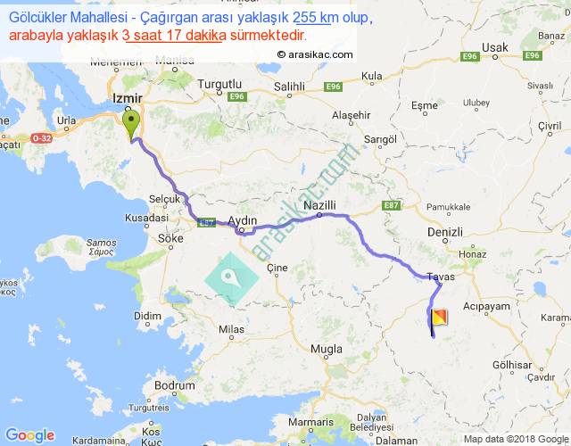 Gölcükler Mahallesi - Çağırgan arası yaklaşık olarak 90 km/h ile yukarıda belirtilen sürede olup, iki yerin kuş uçuşu uzaklığı (mesafesi) 193'dir. Yolculuk otobüsle 4 saat 16 dakika sürmektedir.
