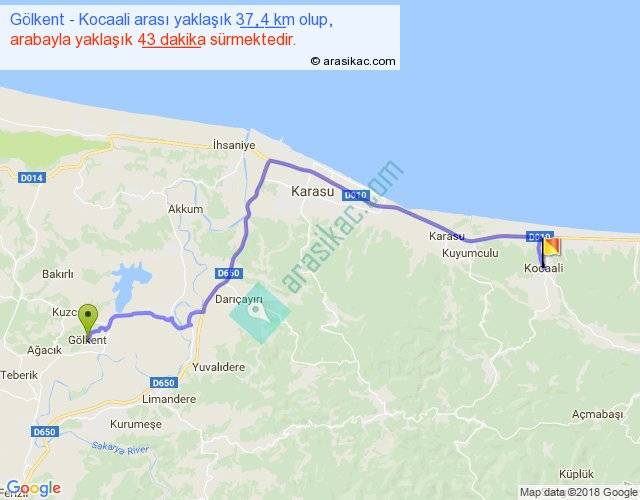Gölkent - Kocaali arası yaklaşık olarak 90 km/h ile yukarıda belirtilen sürede olup, iki yerin kuş uçuşu uzaklığı (mesafesi) 26'dir. Yolculuk otobüsle 55 dakika sürmektedir.