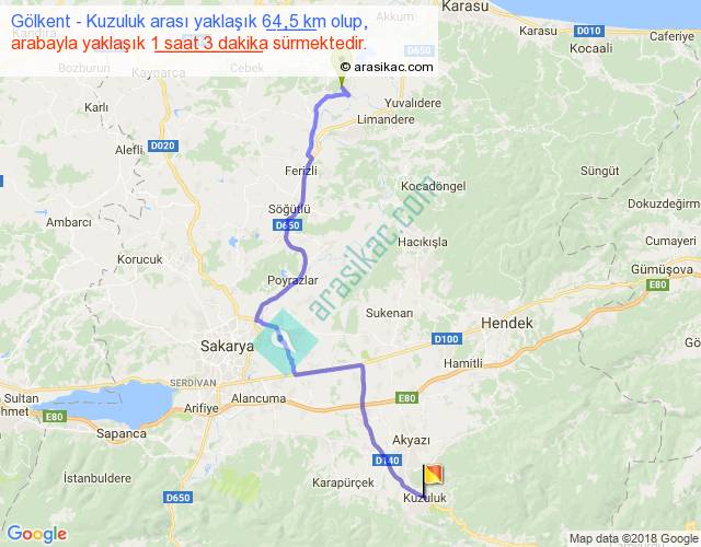 Gölkent - Kuzuluk arası yaklaşık olarak 90 km/h ile yukarıda belirtilen sürede olup, iki yerin kuş uçuşu uzaklığı (mesafesi) 44'dir. Yolculuk otobüsle 1 saat 21 dakika sürmektedir.