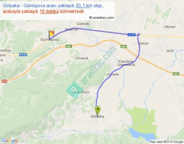 Eğer Gölyaka Gümüşova arası ne kadar yakar (benzin/mazot) diyorsanız, kilometrede 3 ₺ yakan bir aracınız var ise 60, km'de 4 ₺ yakan bir aracınız var ise 80, km'de 5 ₺ yakan bir aracınız var ise 100 ile bu yolculuğu tamamlayabilirsiniz.