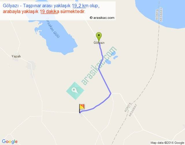 Gölyazı - Taşpınar arası yaklaşık olarak 90 km/h ile yukarıda belirtilen sürede olup, iki yerin kuş uçuşu uzaklığı (mesafesi) 15'dir. Yolculuk otobüsle 24 dakika sürmektedir.