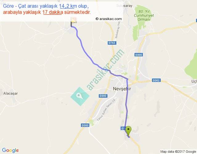 Göre - Çat arası yaklaşık olarak 90 km/h ile yukarıda belirtilen sürede olup, iki yerin kuş uçuşu uzaklığı (mesafesi) 12'dir. Yolculuk otobüsle 22 dakika sürmektedir.