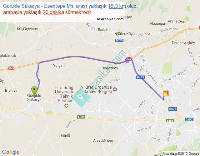 Görükle Sakarya - Esentepe Mh. arası detaylı bilgi