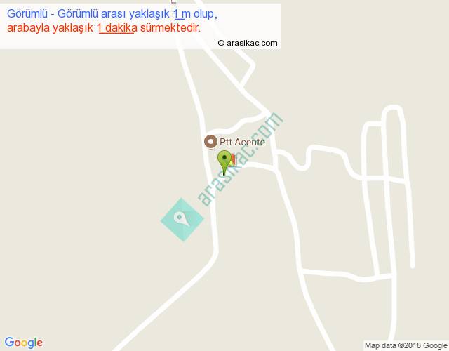 Görümlü - Görümlü arası yaklaşık olarak 90 km/h ile yukarıda belirtilen sürede olup, iki yerin kuş uçuşu uzaklığı (mesafesi) 0'dir. Yolculuk otobüsle 1 dakika sürmektedir.