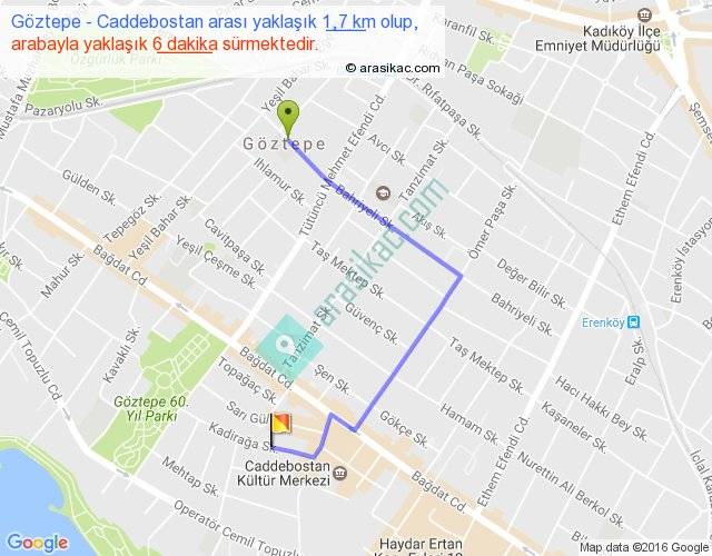 Eğer Göztepe Caddebostan arası ne kadar yakar (benzin/mazot) diyorsanız, kilometrede 3 ₺ yakan bir aracınız var ise 3, km'de 4 ₺ yakan bir aracınız var ise 4, km'de 5 ₺ yakan bir aracınız var ise 5 ile bu yolculuğu tamamlayabilirsiniz.
