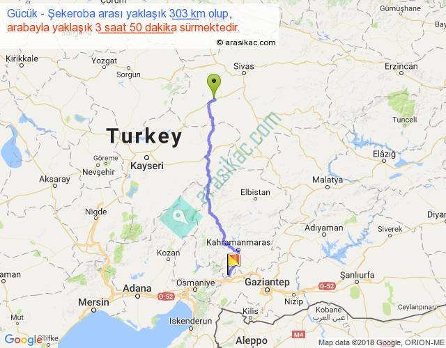 Gücük - Şekeroba arası yaklaşık olarak 90 km/h ile yukarıda belirtilen sürede olup, iki yerin kuş uçuşu uzaklığı (mesafesi) 242'dir. Yolculuk otobüsle 4 saat 59 dakika sürmektedir.