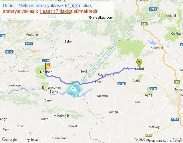 Güdül - Nallıhan arası yaklaşık olarak 90 km/h ile yukarıda belirtilen sürede olup, iki yerin kuş uçuşu uzaklığı (mesafesi) 76'dir. Yolculuk otobüsle 1 saat 40 dakika sürmektedir.