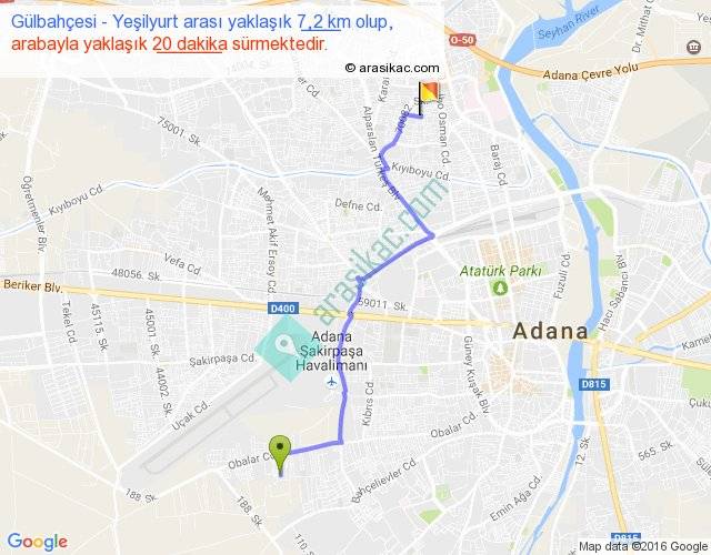 Gülbahçesi - Yeşilyurt arası yaklaşık olarak 90 km/h ile yukarıda belirtilen sürede olup, iki yerin kuş uçuşu uzaklığı (mesafesi) 5'dir. Yolculuk otobüsle 26 dakika sürmektedir.