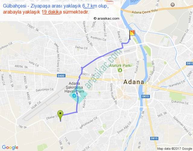 Gülbahçesi - Ziyapaşa arası yaklaşık olarak 90 km/h ile yukarıda belirtilen sürede olup, iki yerin kuş uçuşu uzaklığı (mesafesi) 5'dir. Yolculuk otobüsle 24 dakika sürmektedir.