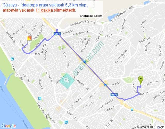 Eğer Gülsuyu İdealtepe arası ne kadar yakar (benzin/mazot) diyorsanız, kilometrede 3 ₺ yakan bir aracınız var ise 15, km'de 4 ₺ yakan bir aracınız var ise 20, km'de 5 ₺ yakan bir aracınız var ise 25 ile bu yolculuğu tamamlayabilirsiniz.