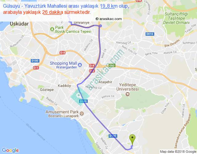 Gülsuyu - Yavuztürk Mahallesi arası yaklaşık olarak 90 km/h ile yukarıda belirtilen sürede olup, iki yerin kuş uçuşu uzaklığı (mesafesi) 14'dir. Yolculuk otobüsle 33 dakika sürmektedir.