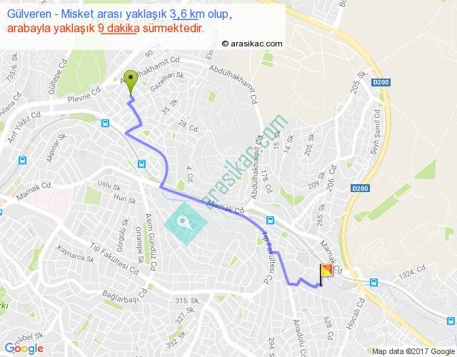 Gülveren - Misket arası yaklaşık olarak 90 km/h ile yukarıda belirtilen sürede olup, iki yerin kuş uçuşu uzaklığı (mesafesi) 3'dir. Yolculuk otobüsle 11 dakika sürmektedir.