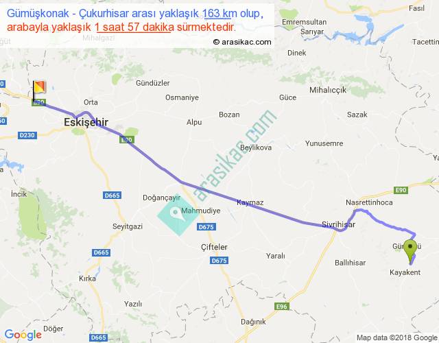 Gümüşkonak - Çukurhisar arası yaklaşık olarak 90 km/h ile yukarıda belirtilen sürede olup, iki yerin kuş uçuşu uzaklığı (mesafesi) 140'dir. Yolculuk otobüsle 2 saat 32 dakika sürmektedir.