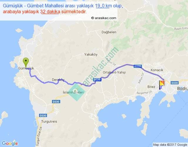Eğer Gümüşlük Gümbet Mahallesi arası ne kadar yakar (benzin/mazot) diyorsanız, kilometrede 3 ₺ yakan bir aracınız var ise 57, km'de 4 ₺ yakan bir aracınız var ise 76, km'de 5 ₺ yakan bir aracınız var ise 95 ile bu yolculuğu tamamlayabilirsiniz.