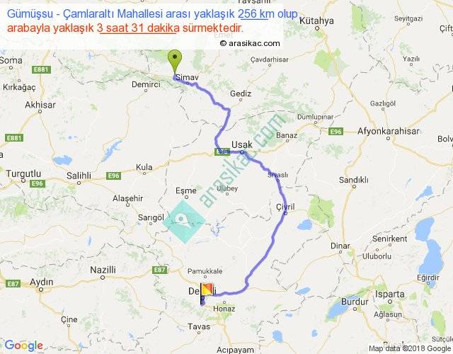 Eğer Gümüşsu Çamlaraltı Mahallesi arası ne kadar yakar (benzin/mazot) diyorsanız, kilometrede 3 ₺ yakan bir aracınız var ise 768, km'de 4 ₺ yakan bir aracınız var ise 1024, km'de 5 ₺ yakan bir aracınız var ise 1280 ile bu yolculuğu tamamlayabilirsiniz.