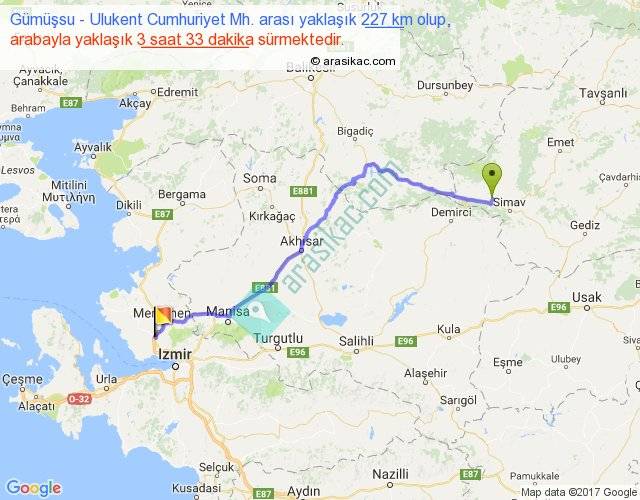 Eğer Gümüşsu Ulukent Cumhuriyet Mh. arası ne kadar yakar (benzin/mazot) diyorsanız, kilometrede 3 ₺ yakan bir aracınız var ise 681, km'de 4 ₺ yakan bir aracınız var ise 908, km'de 5 ₺ yakan bir aracınız var ise 1135 ile bu yolculuğu tamamlayabilirsiniz.