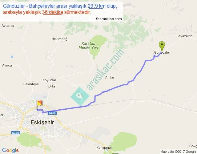 Gündüzler - Bahçelievler arası yaklaşık olarak 90 km/h ile yukarıda belirtilen sürede olup, iki yerin kuş uçuşu uzaklığı (mesafesi) 26'dir. Yolculuk otobüsle 46 dakika sürmektedir.