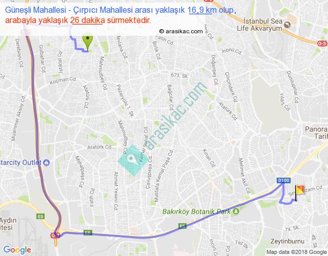 Eğer Güneşli Mahallesi Çırpıcı Mahallesi arası ne kadar yakar (benzin/mazot) diyorsanız, kilometrede 3 ₺ yakan bir aracınız var ise 48, km'de 4 ₺ yakan bir aracınız var ise 64, km'de 5 ₺ yakan bir aracınız var ise 80 ile bu yolculuğu tamamlayabilirsiniz.
