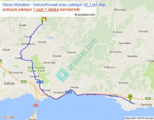 Güney Mahallesi - Gebze Kocaeli arası yaklaşık olarak 90 km/h ile yukarıda belirtilen sürede olup, iki yerin kuş uçuşu uzaklığı (mesafesi) 28'dir. Yolculuk otobüsle 1 saat 19 dakika sürmektedir.