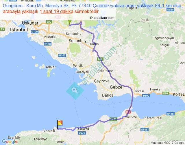 Güngören - Koru Mh. Manolya Sk. Pk:77340 Çınarcık yalova arası detaylı bilgi