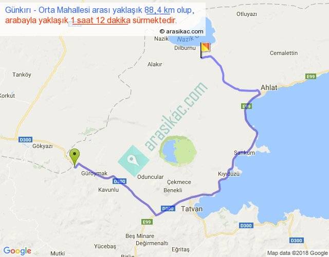 Günkırı - Orta Mahallesi arası yaklaşık olarak 90 km/h ile yukarıda belirtilen sürede olup, iki yerin kuş uçuşu uzaklığı (mesafesi) 39'dir. Yolculuk otobüsle 1 saat 33 dakika sürmektedir.