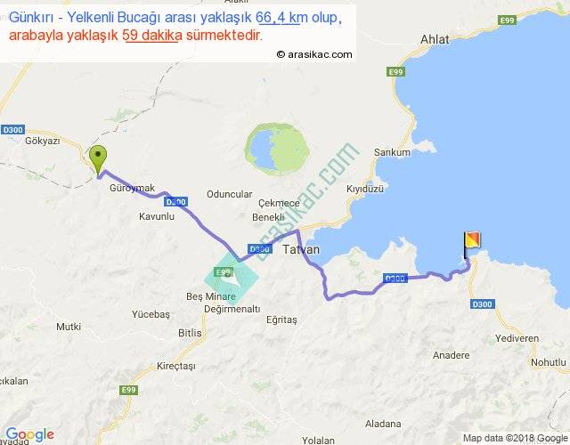 Günkırı - Yelkenli Bucağı arası yaklaşık olarak 90 km/h ile yukarıda belirtilen sürede olup, iki yerin kuş uçuşu uzaklığı (mesafesi) 50'dir. Yolculuk otobüsle 1 saat 16 dakika sürmektedir.