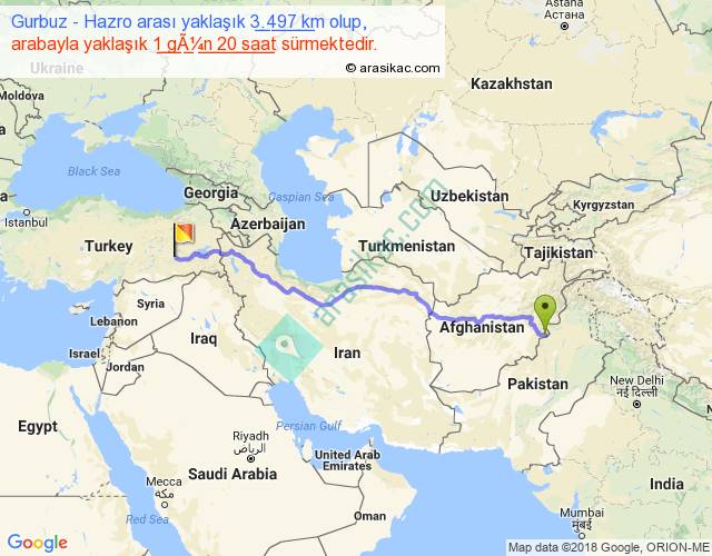 Gurbuz - Hazro arası yaklaşık olarak 90 km/h ile yukarıda belirtilen sürede olup, iki yerin kuş uçuşu uzaklığı (mesafesi) 2666'dir. Eğer belirtilen yerler arasında uçak seferi var ise bu süre uçakla 4 saat 06 dakika'ya kadar düşebilir. Yolculuk otobüsle 2 gün 9 saat sürmektedir.