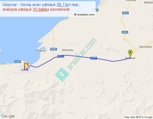 Gürpınar - Gevaş arası yaklaşık olarak 90 km/h ile yukarıda belirtilen sürede olup, iki yerin kuş uçuşu uzaklığı (mesafesi) 26'dir. Yolculuk otobüsle 29 dakika sürmektedir.