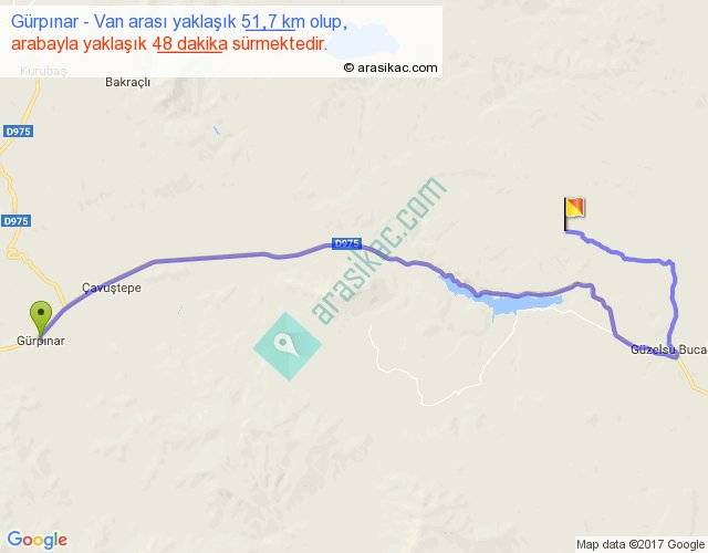 Gürpınar - Van arası yaklaşık olarak 90 km/h ile yukarıda belirtilen sürede olup, iki yerin kuş uçuşu uzaklığı (mesafesi) 20'dir. Yolculuk otobüsle 35 dakika sürmektedir.