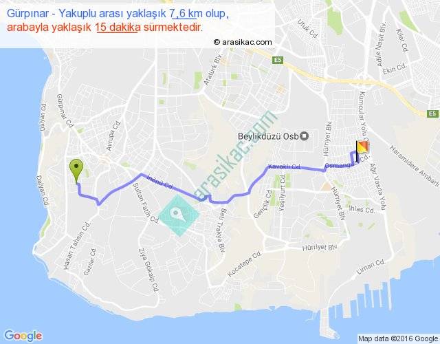 Gürpınar - Yakuplu arası yaklaşık olarak 90 km/h ile yukarıda belirtilen sürede olup, iki yerin kuş uçuşu uzaklığı (mesafesi) 6'dir. Yolculuk otobüsle 19 dakika sürmektedir.